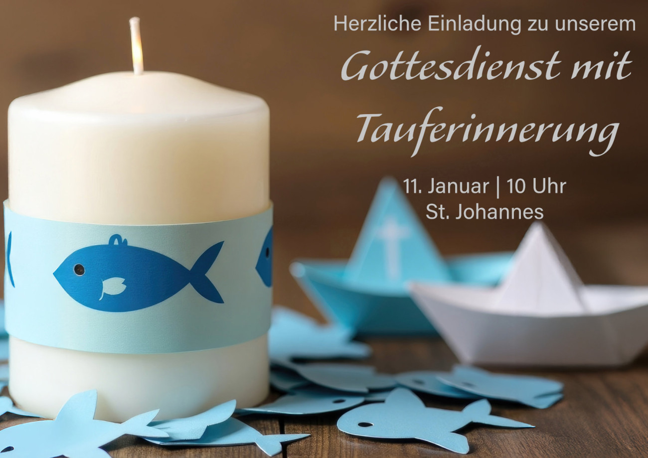 Vielleicht ist es schon viele Jahre her, dass Sie selbst getauft wurden. Oder Sie denken an den Moment zurück, als Ihr Kind in der Taufe Gott anvertraut wurde. Die Taufe ist mehr als ein schönes Fest – sie ist das Zeichen, dass Gott uns kennt, liebt und begleitet, unser ganzes Leben lang. Darum feiern wir am Sonntag, 11. Januar 2026, um 10.00 Uhr in St. Johannes einen besonderen Gottesdienst für Große und Kleine zur Tauferinnerung. Gemeinsam wollen wir danken, uns segnen lassen und neu spüren: Ich bin Gottes geliebtes Kind – heute und an jedem Tag.